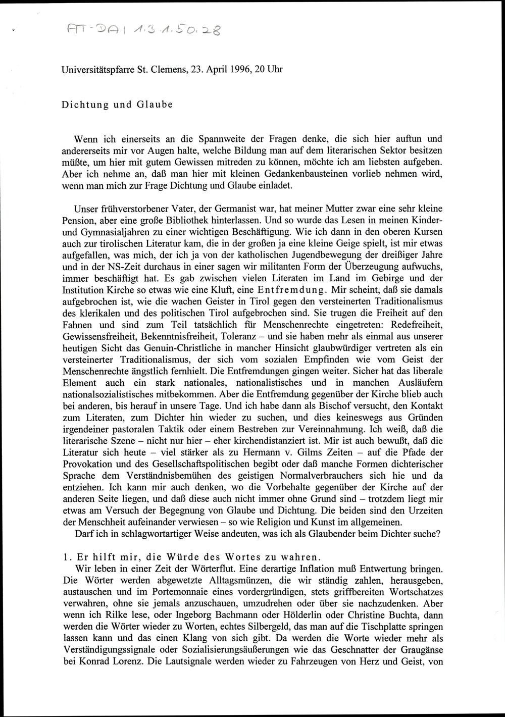 Dichtung und Glaube