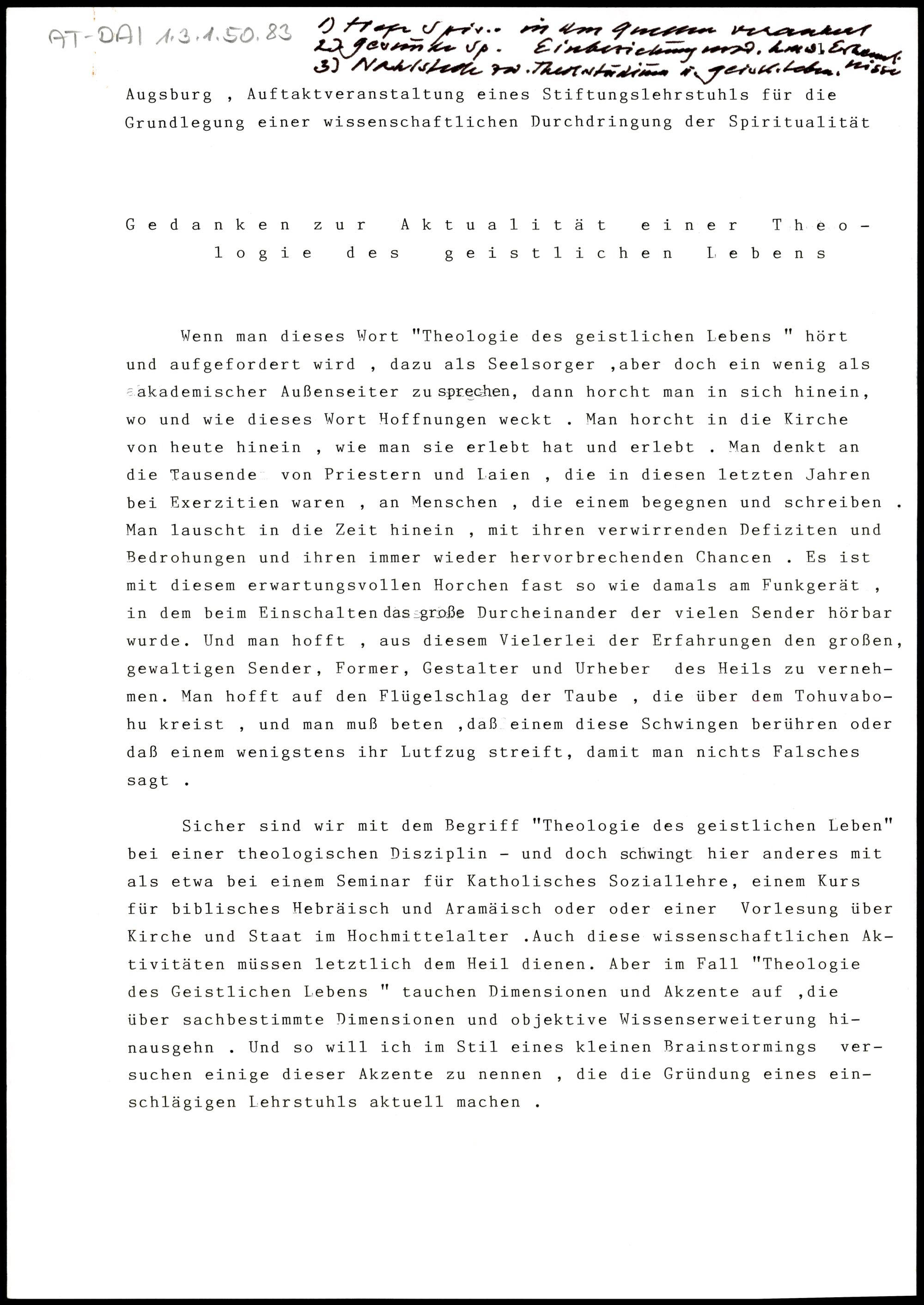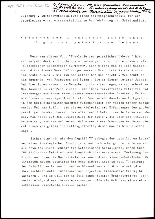 Gedanken zur Aktualität einer Theologie des geistlichen Lebens