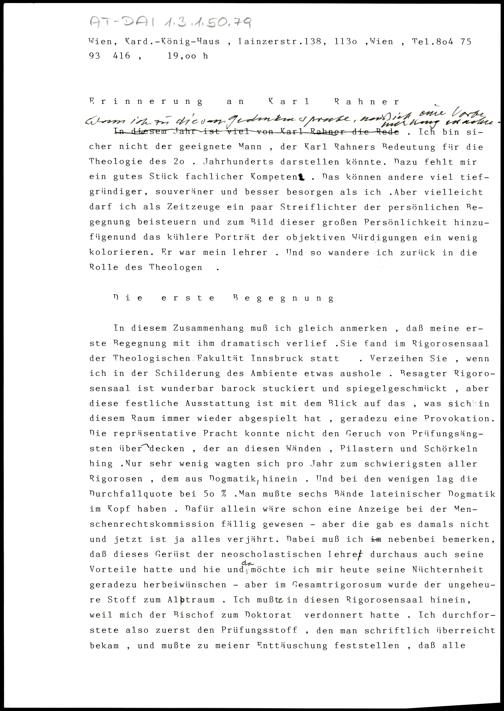 Erinnerung an Karl Rahner
