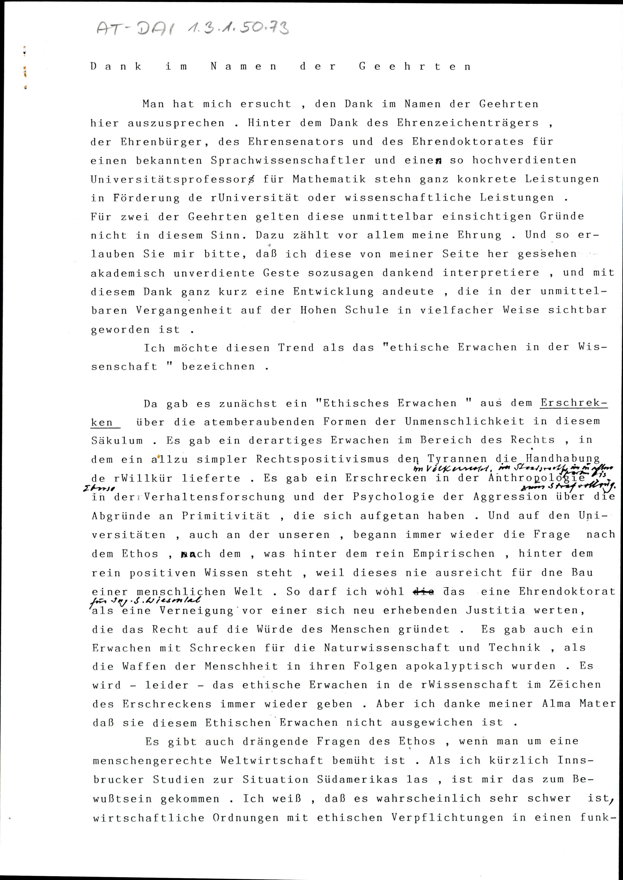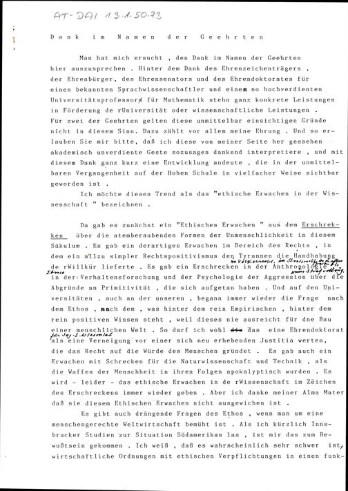 Dank im Namen der Geehrten