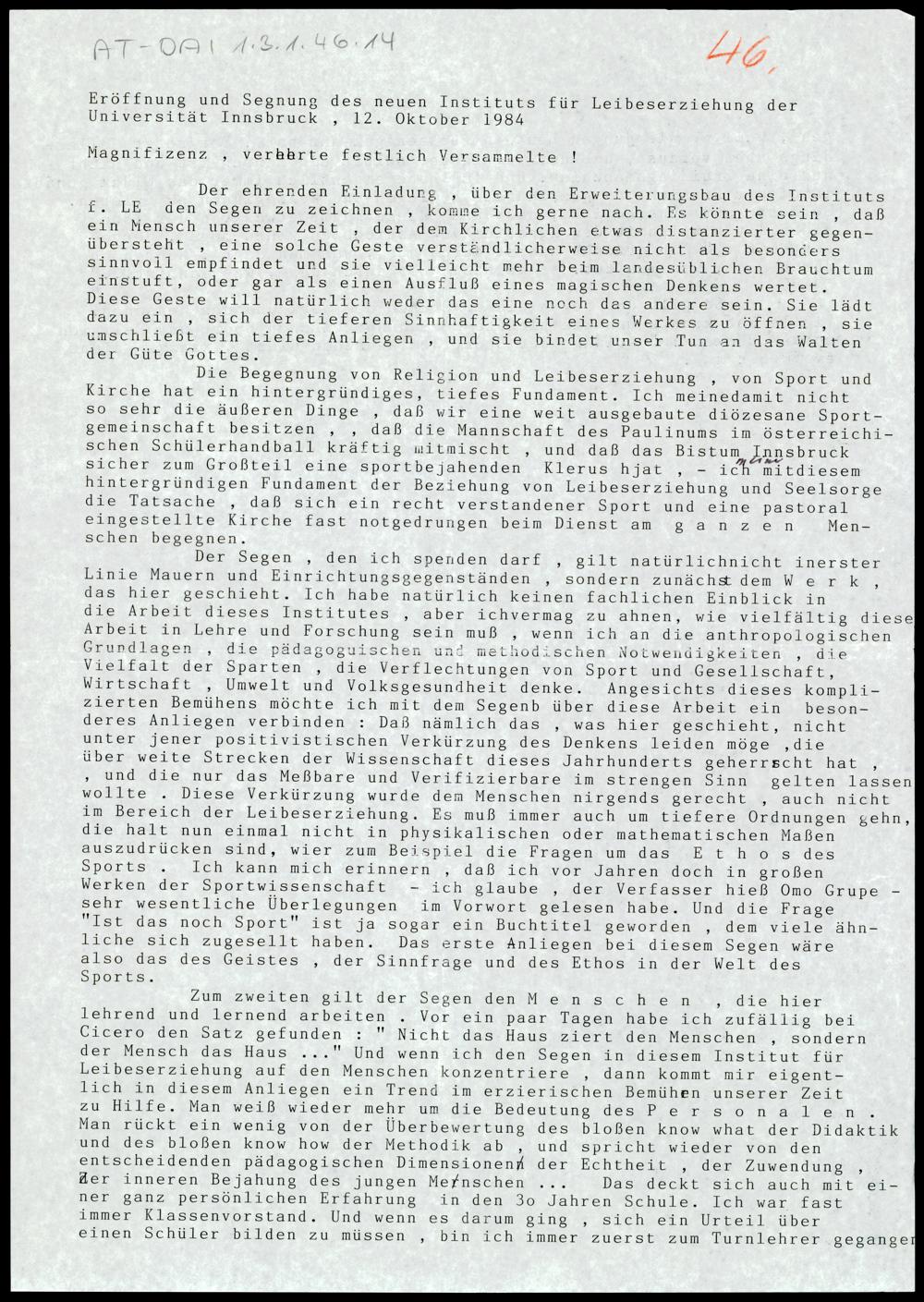 Eröffnung und Segnung des neuen Instituts für Leibeserziehung