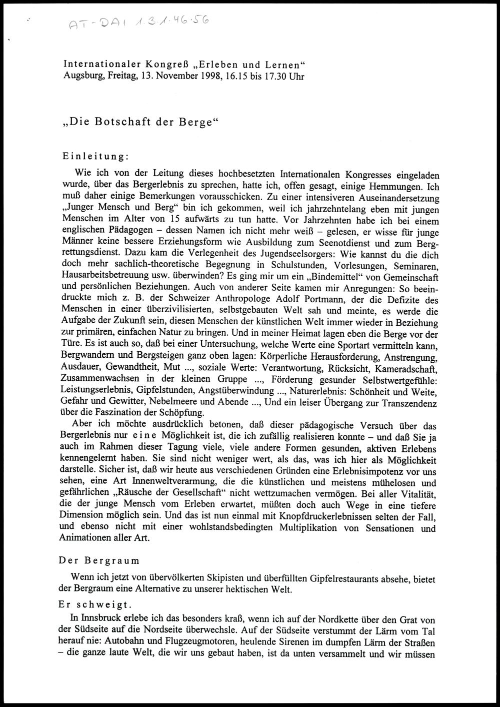 "Die Botschaft der Berge"