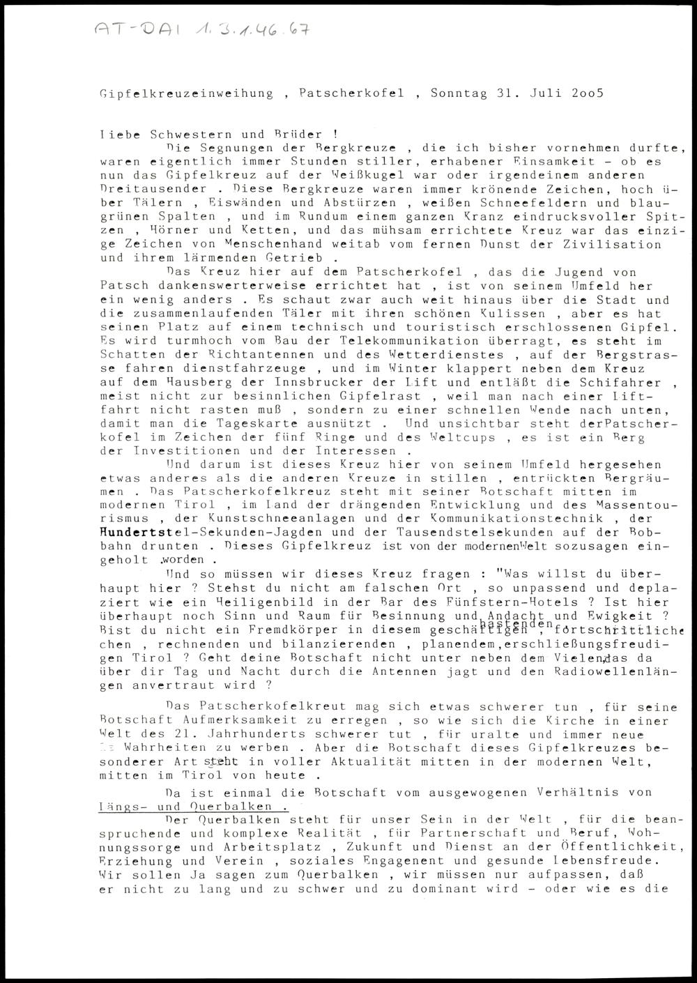 Gipfelkreuzeinweihung Patscherkofel