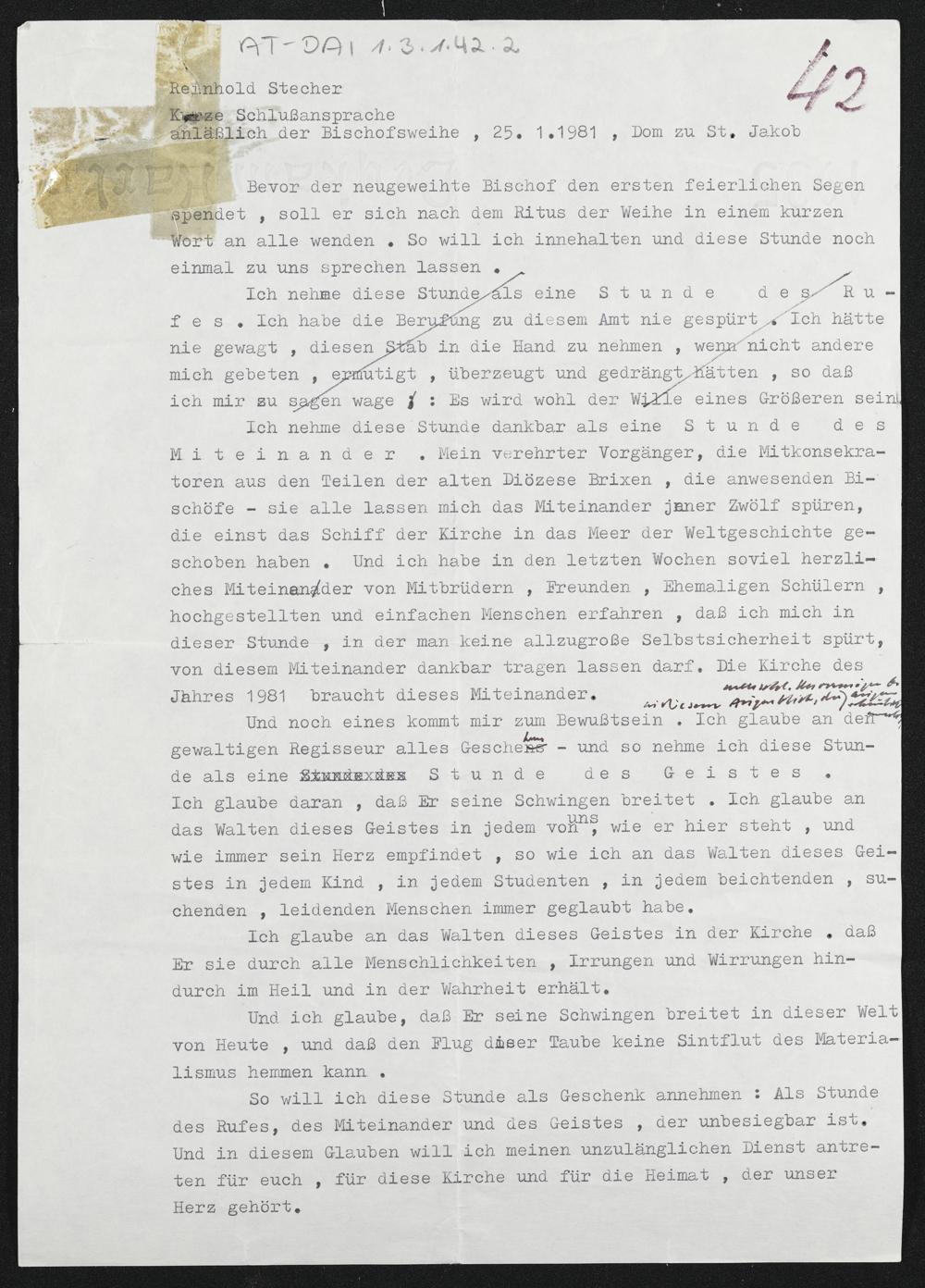 Nachlass Bischof Stecher
