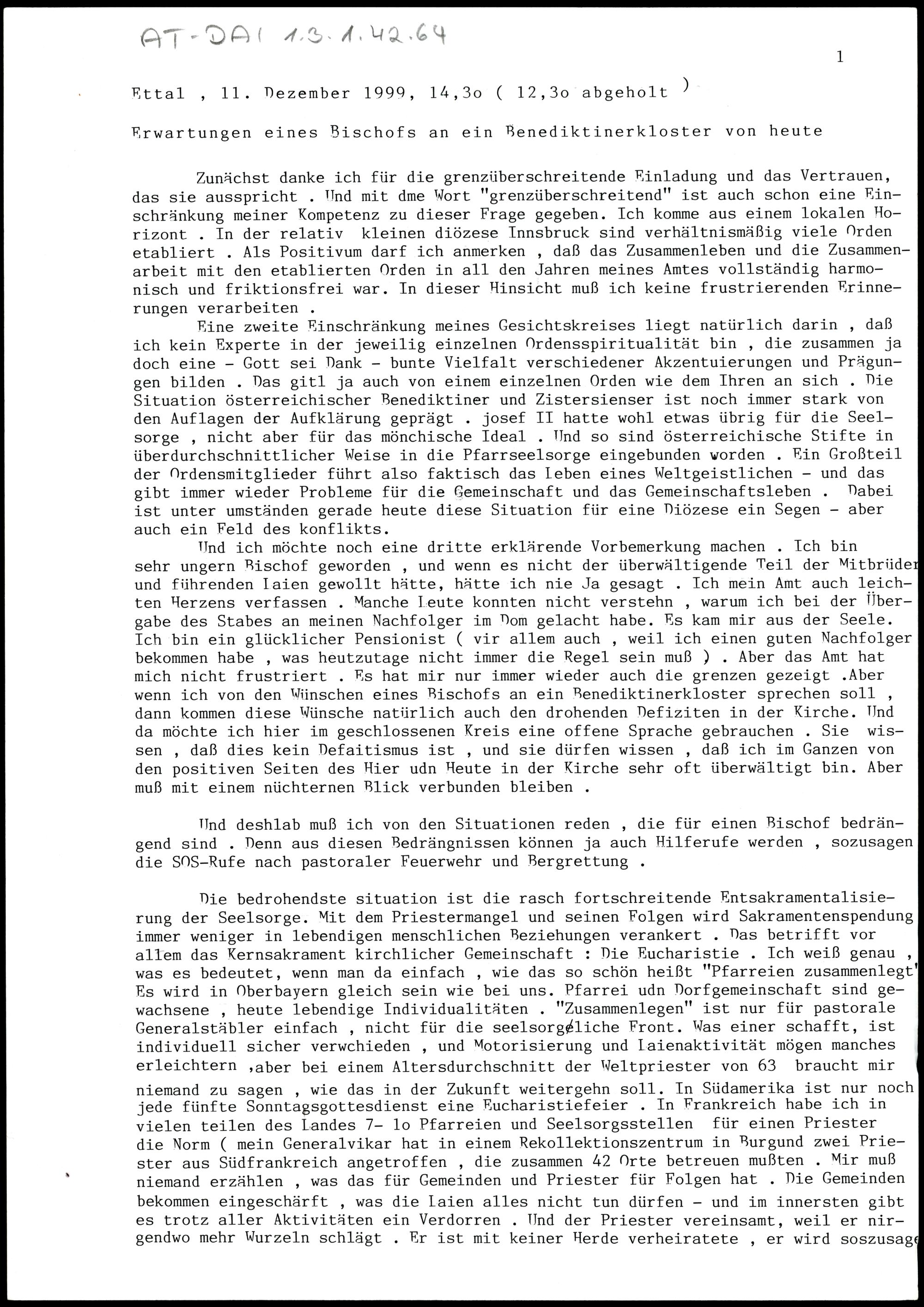 Erwartungen eines Bischofs an ein Benediktinerkloster von heute