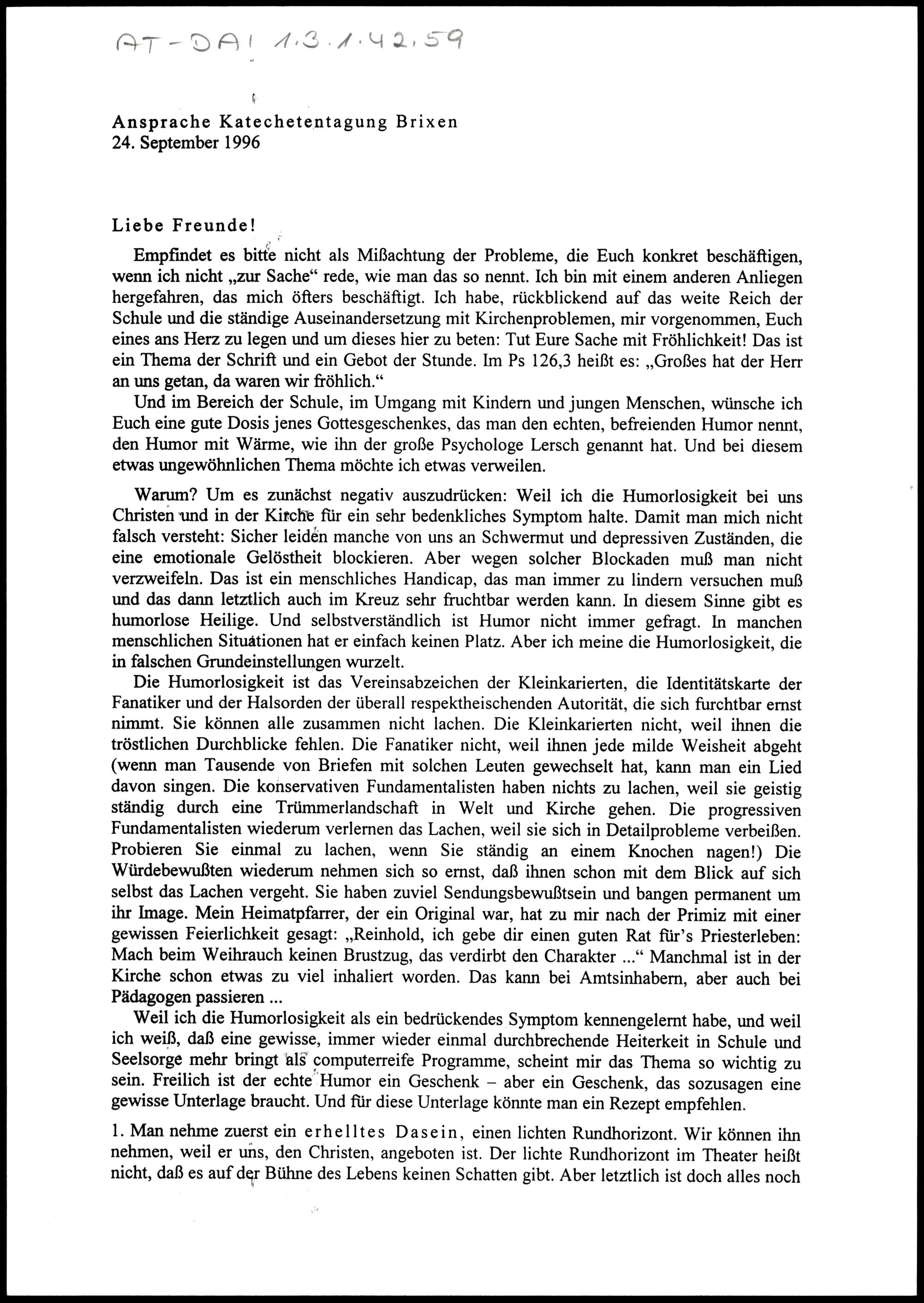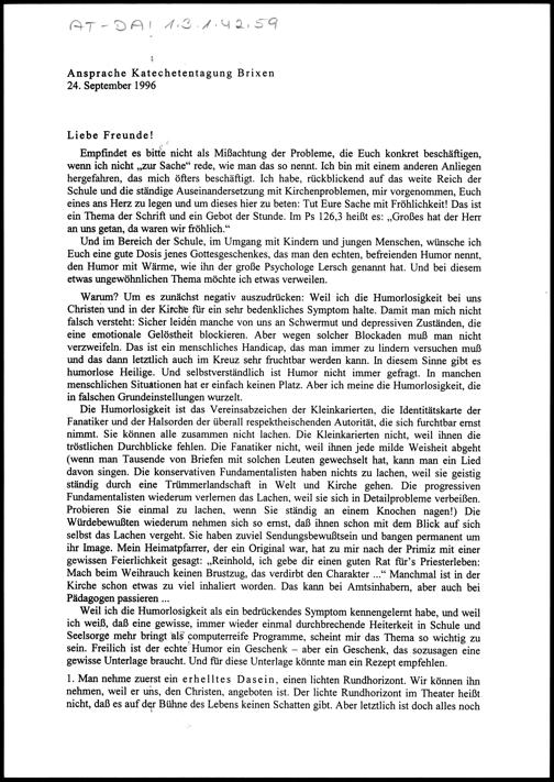 Ansprache Katechetentagung Brixen
