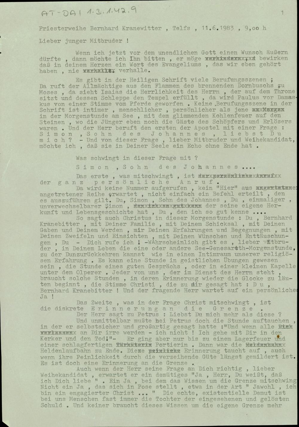 Priesterweihe Bernhard Kranewitter