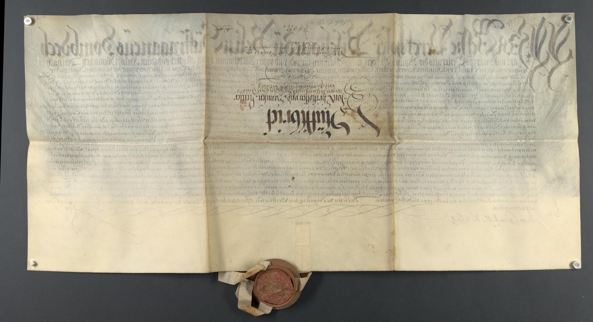 Vorderseite, Plica geöffnet, Unterschrift und Siegel sichtbar
