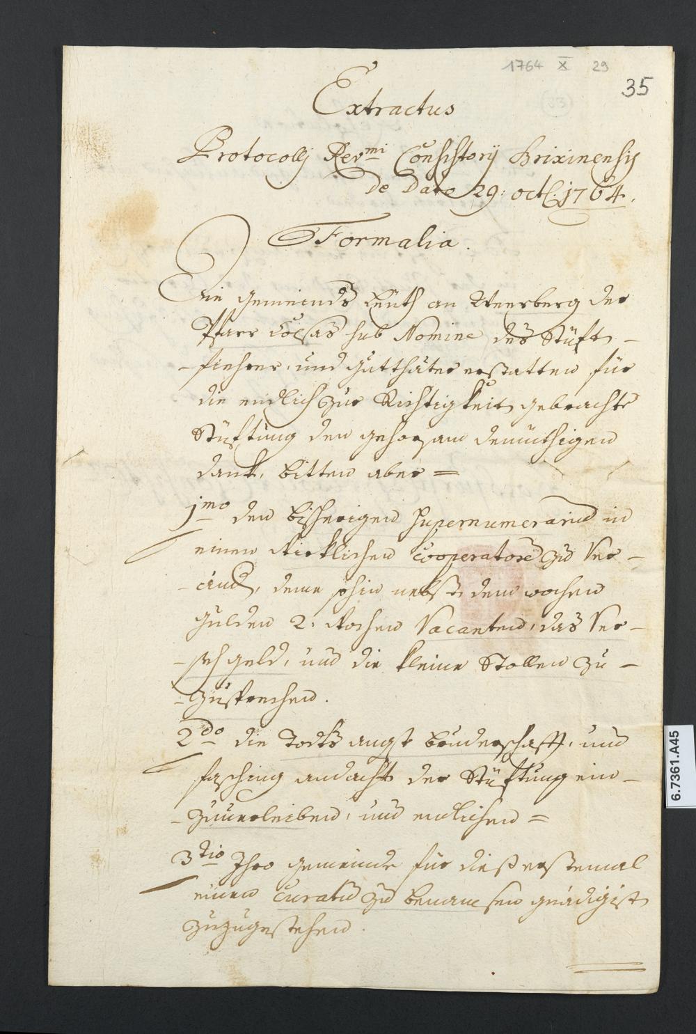 Beglaubigter Protokollbuchauszug Ablehnung wirklicher Kooperator