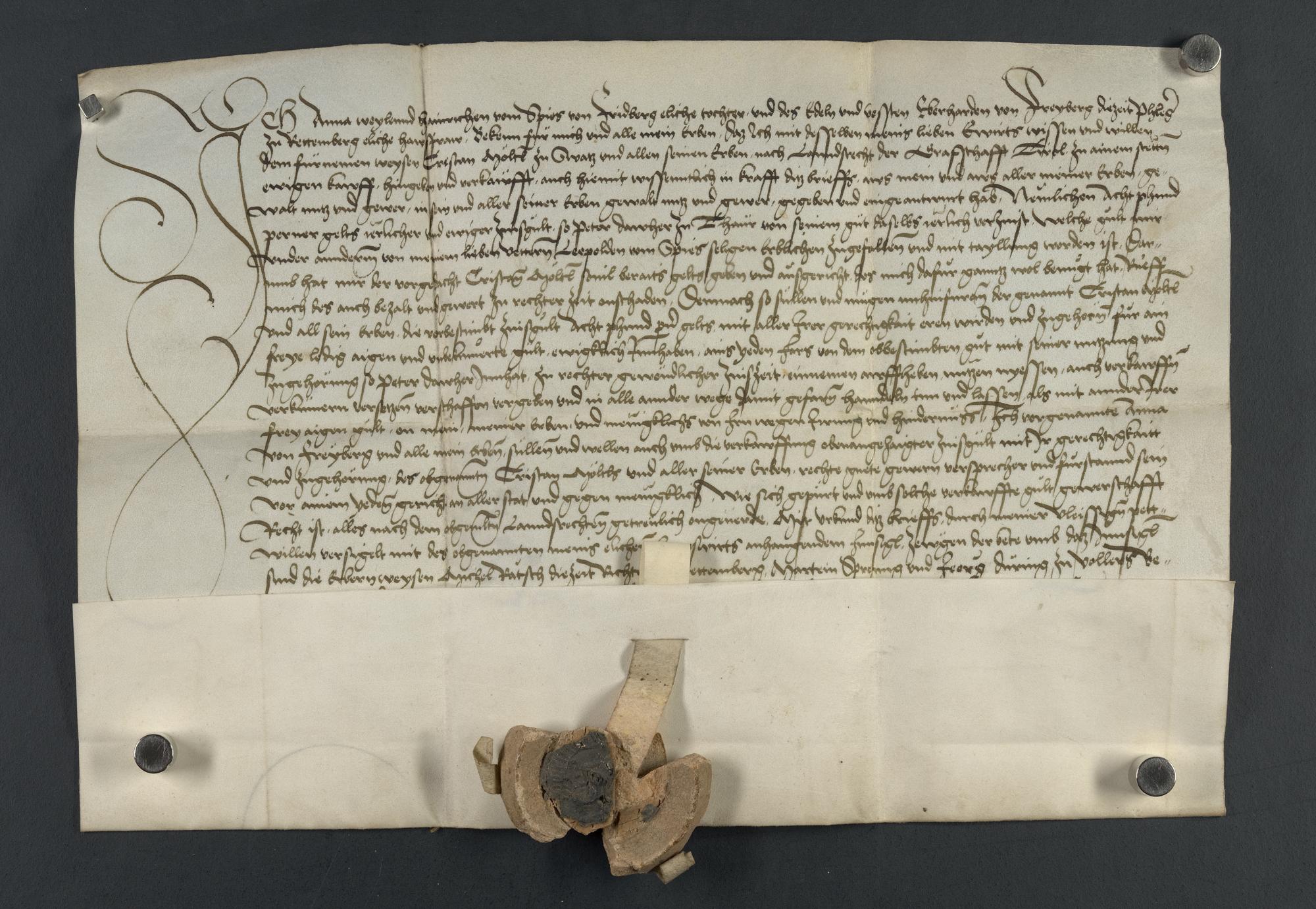 Vorderseite, Plica geschlossen, Siegel sichtbar