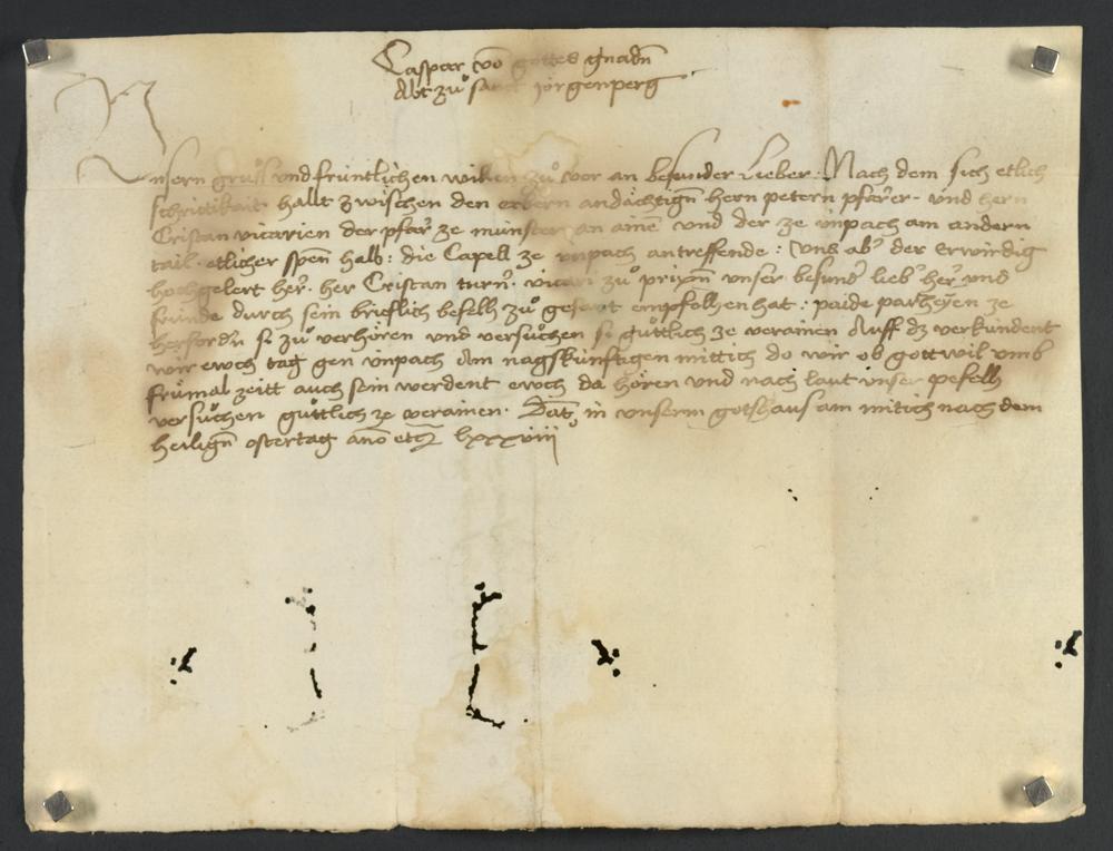 Schreiben von Abt Caspar von Georgenberg