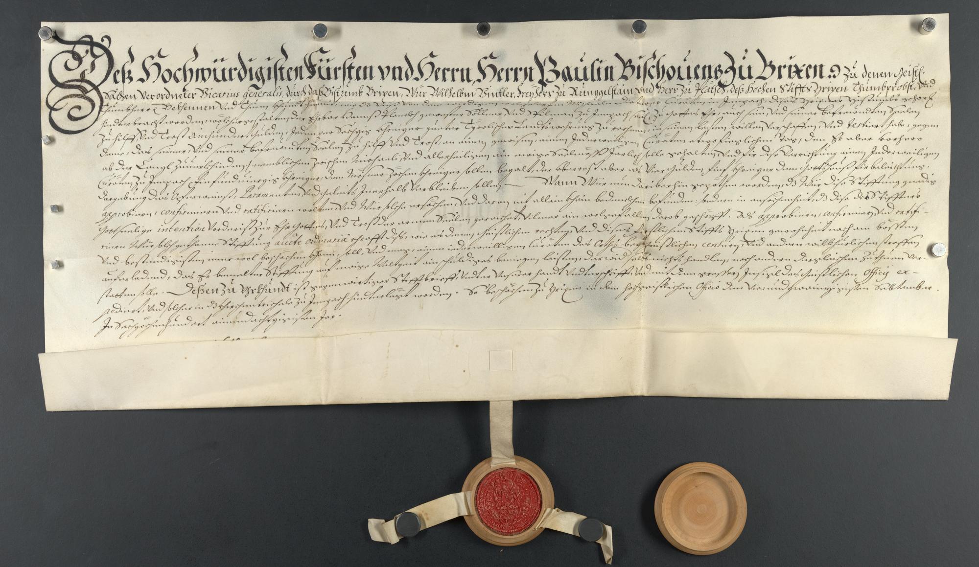 Vorderseite, Plica geöffnet, Unterschriften sichtbar