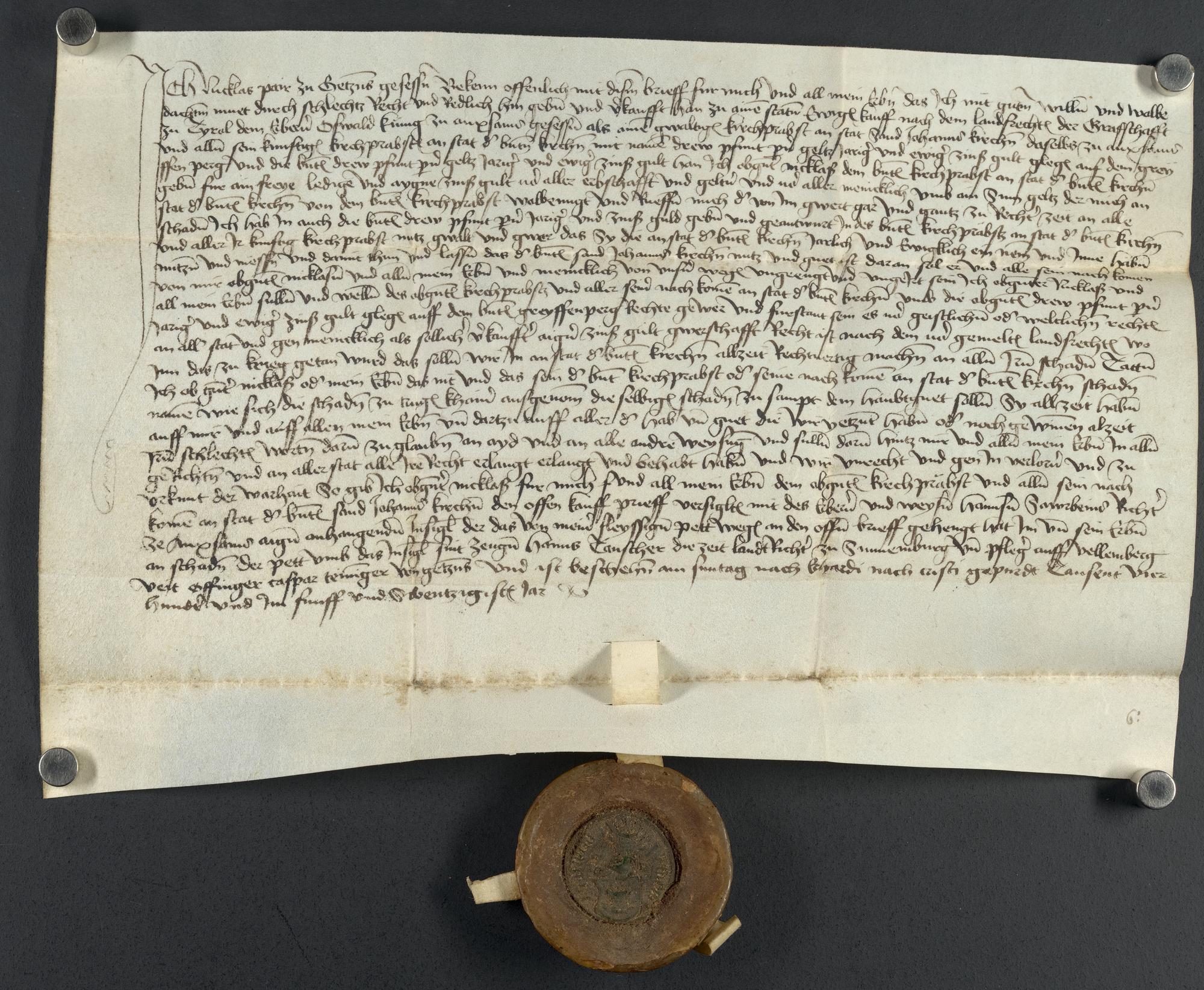 Kaufurkunde jährlicher Zins Greyffenperg