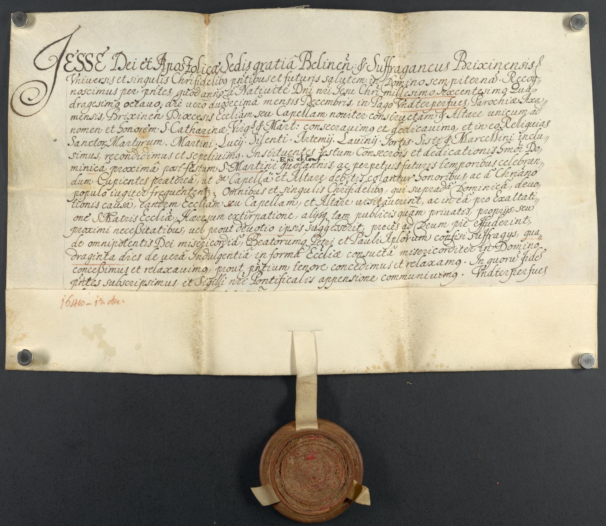 Weiheurkunde Kapelle Hl. Katharina Unterperfuß