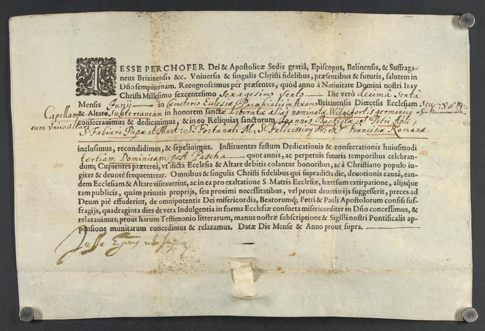 Weihebrief Wilfgefortiskapelle