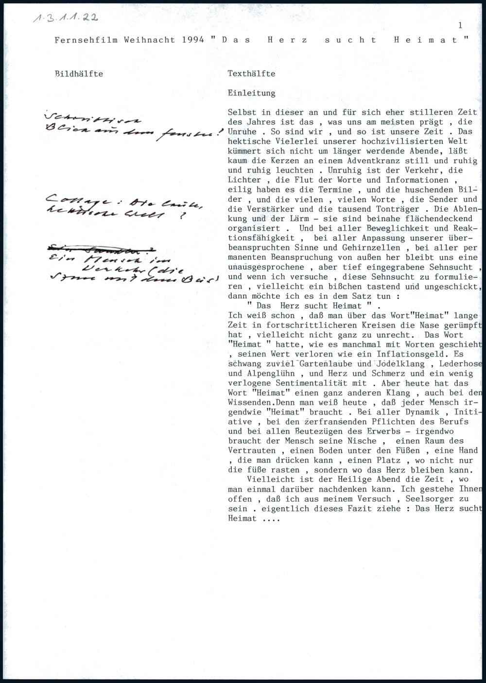 Fernsehfilm Weihnacht 1994 "Das Herz sucht Heimat"