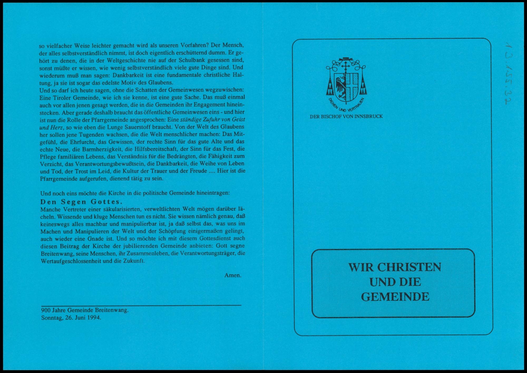 Predigt doppelseitig auf ein blaues Blatt gedruckt/Version zum Austeilen im Gott...