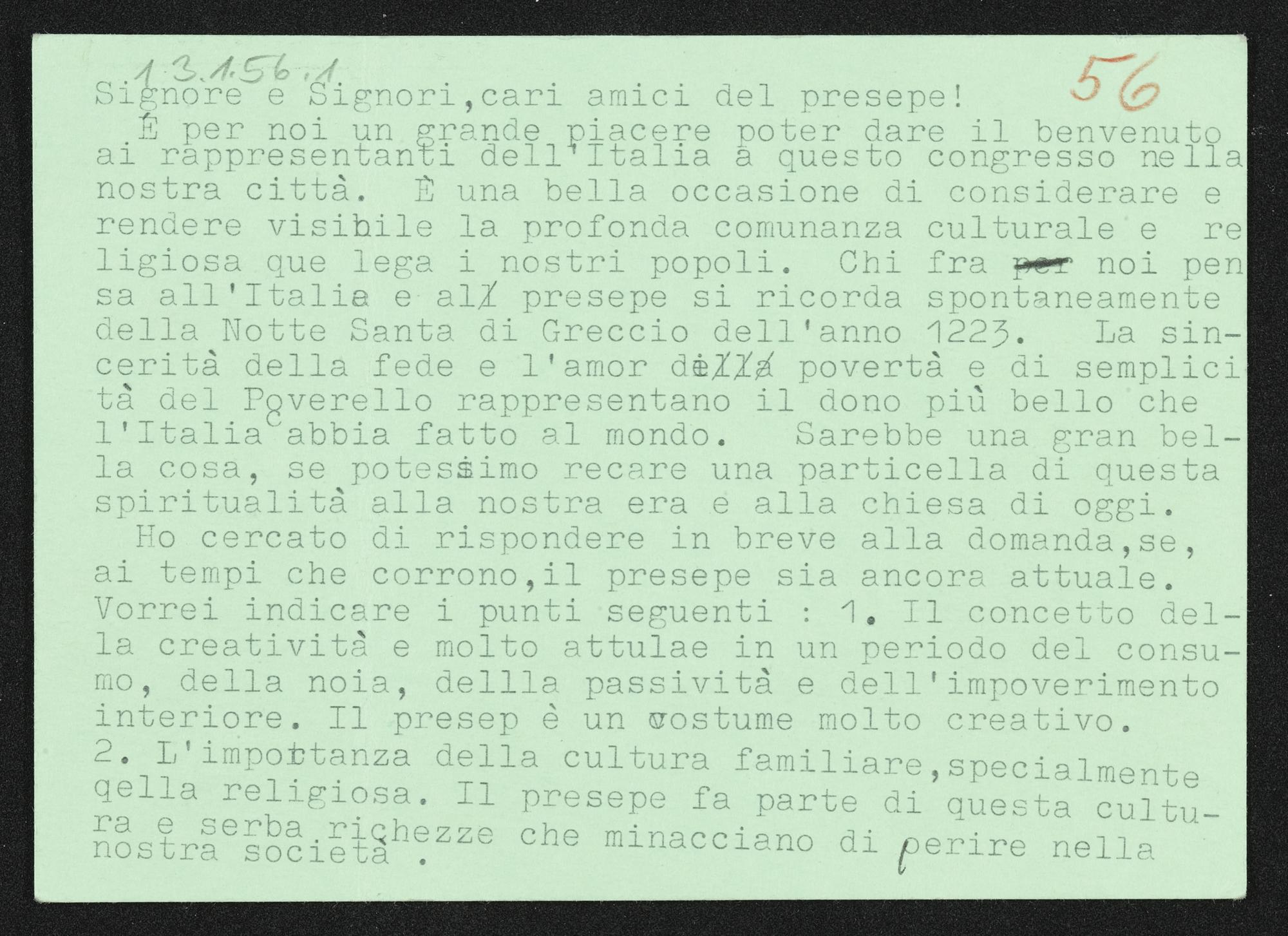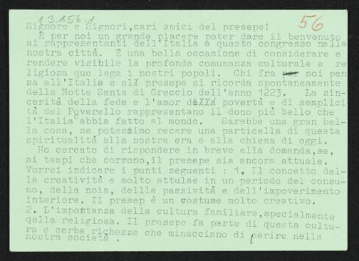 Grußworte zum Weltkrippenkongress Innsbruck 1974.