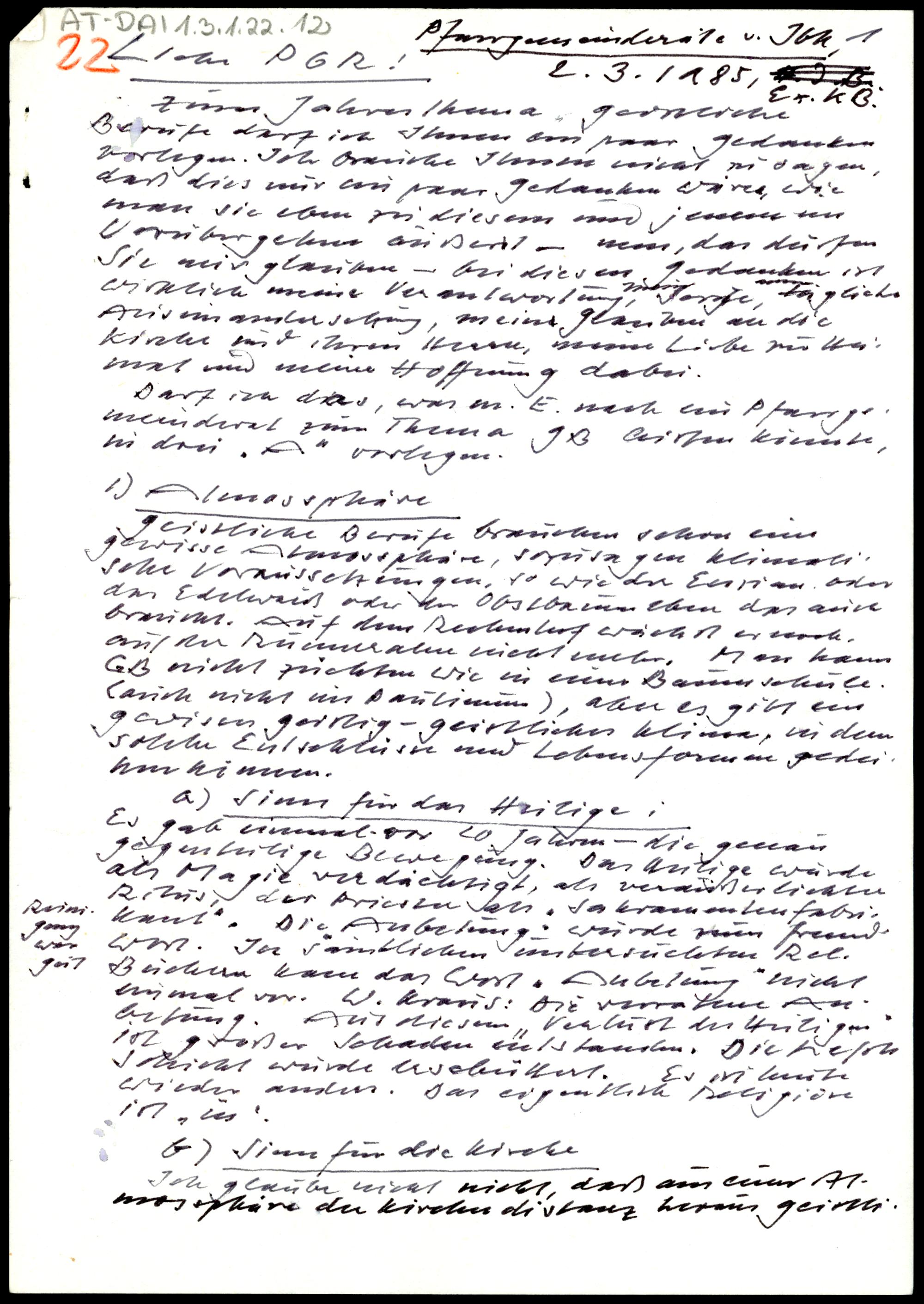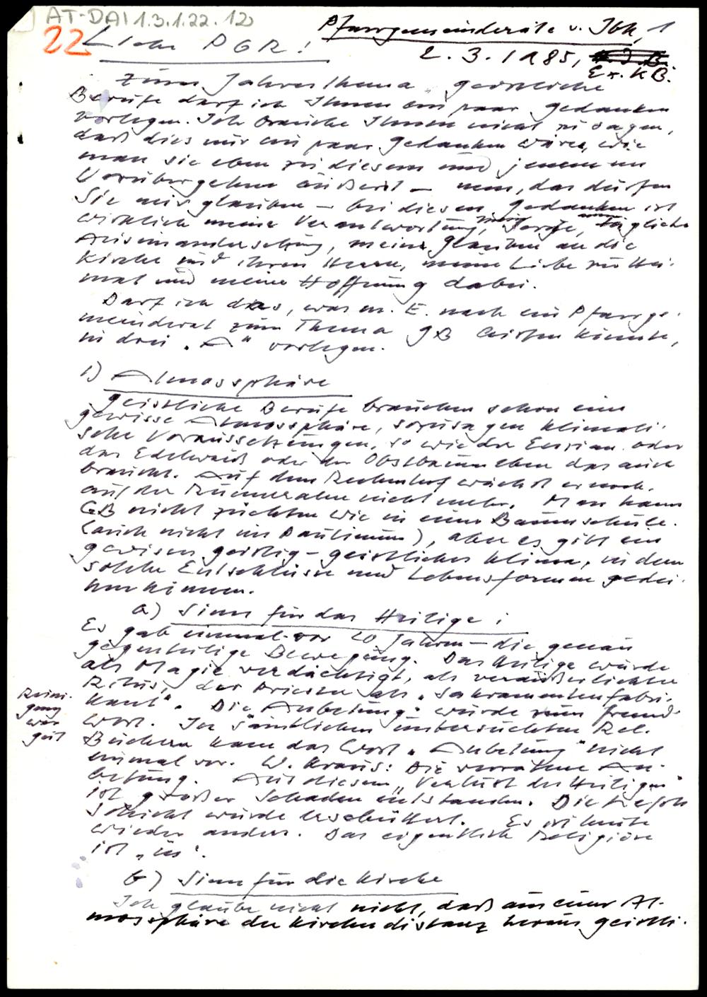 Besinnung zum Seelsorgsthema 1985 "Geistliche Berufe"
