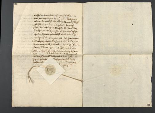 Seite 6 mit Siegel gefaltet, Schrift darunter sichtbar