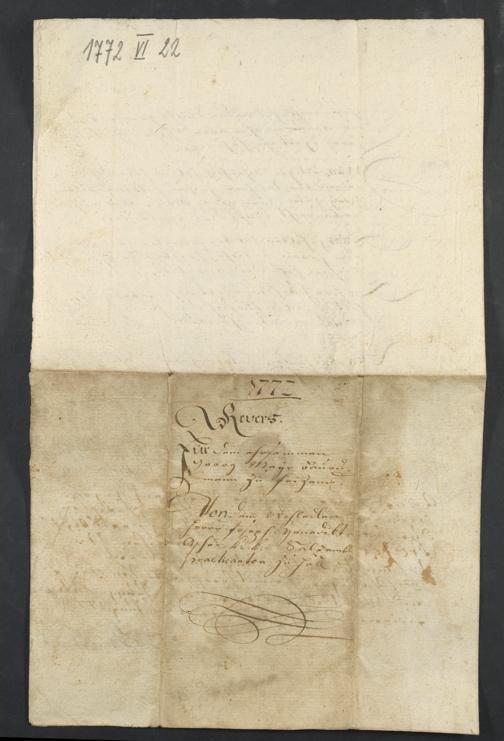Rückseite mit Zusammenfassung und Jahreszahl sowie Datum von späterer Hand