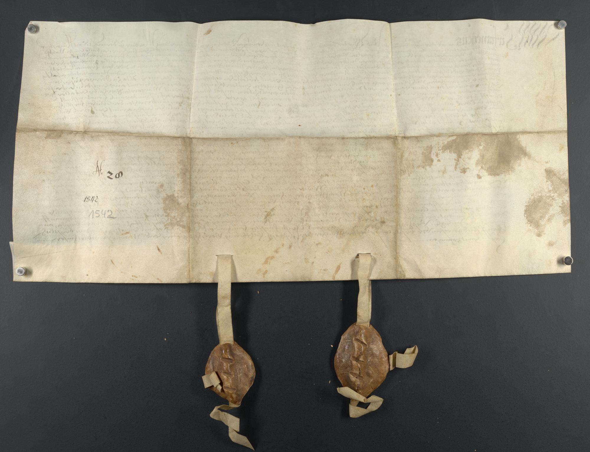Vorderseite, Plica aufgefaltet, zwei Siegel sichtbar