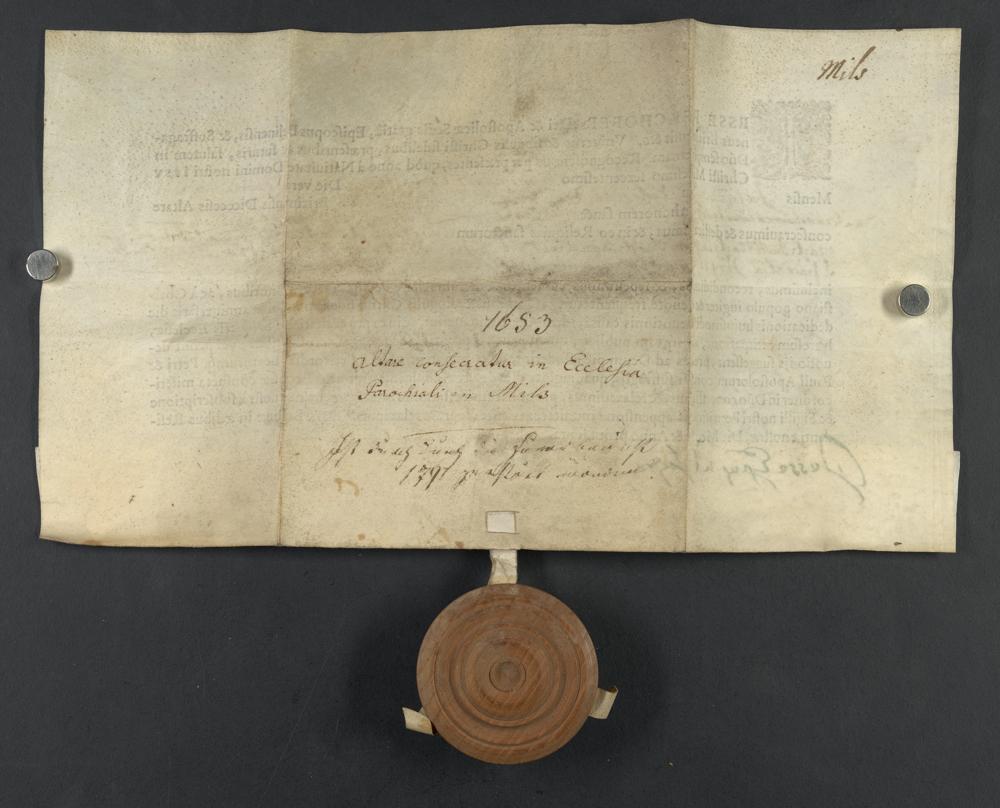 Beurkundung Weihe linker Seitenaltar Hl. Josef