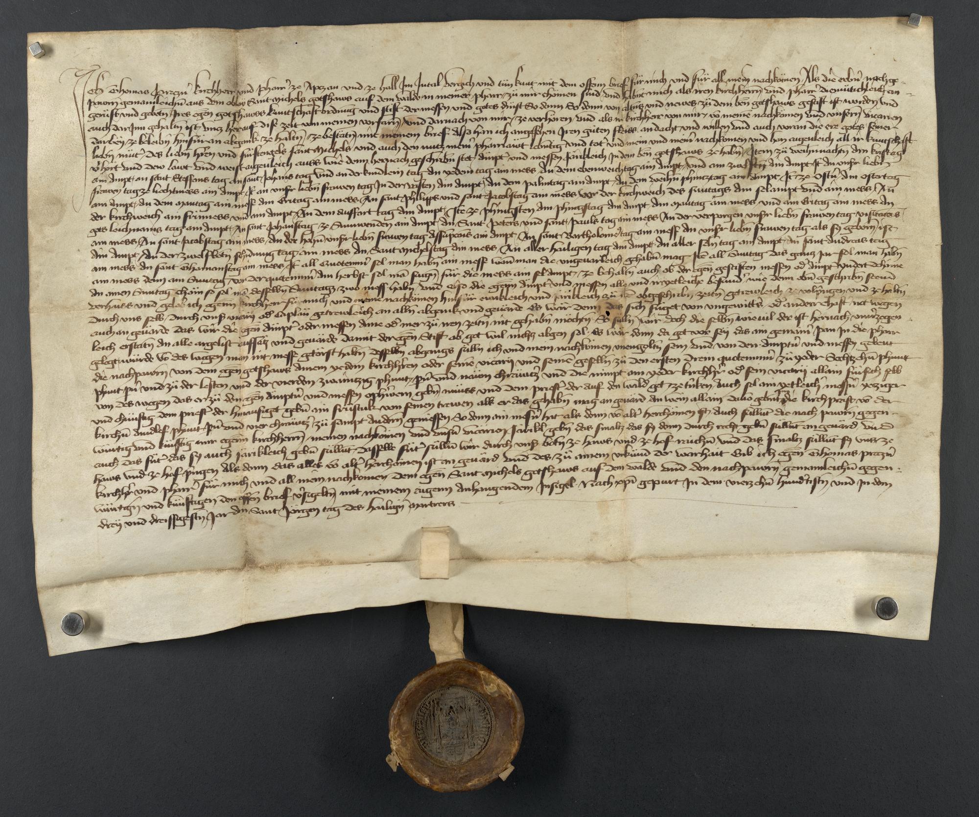 Urkunde Kundschaft, Ordnung, Stiftmessen und die alten und neuen Gottesdienste