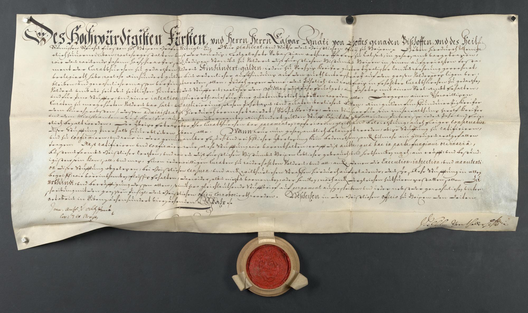Vorderseite, Plica links geöffnet, Siegel geöffnet