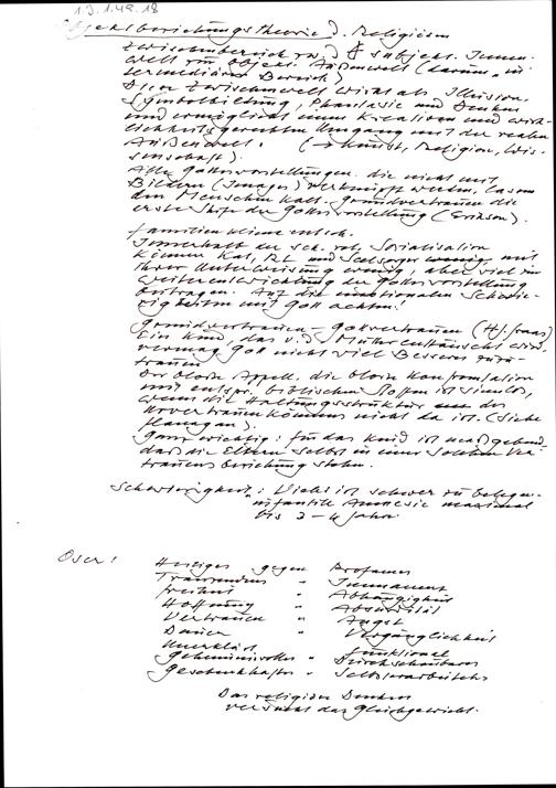 Handschriftliche Notizen: Objetbeziehungstheorie