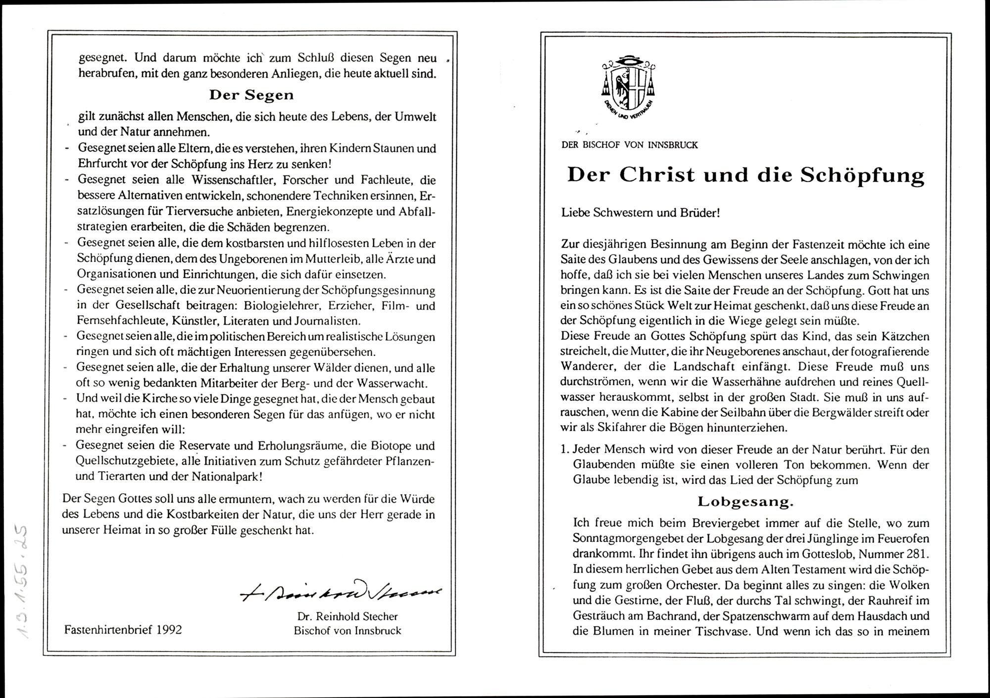 Fastenhirtenbrief 1992-Manuskript