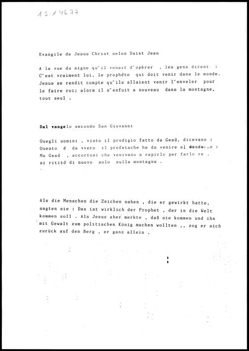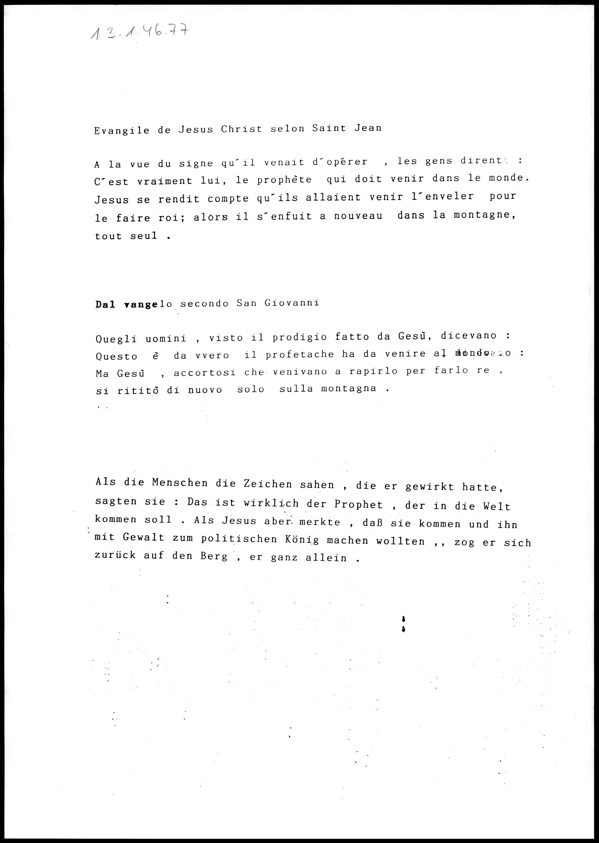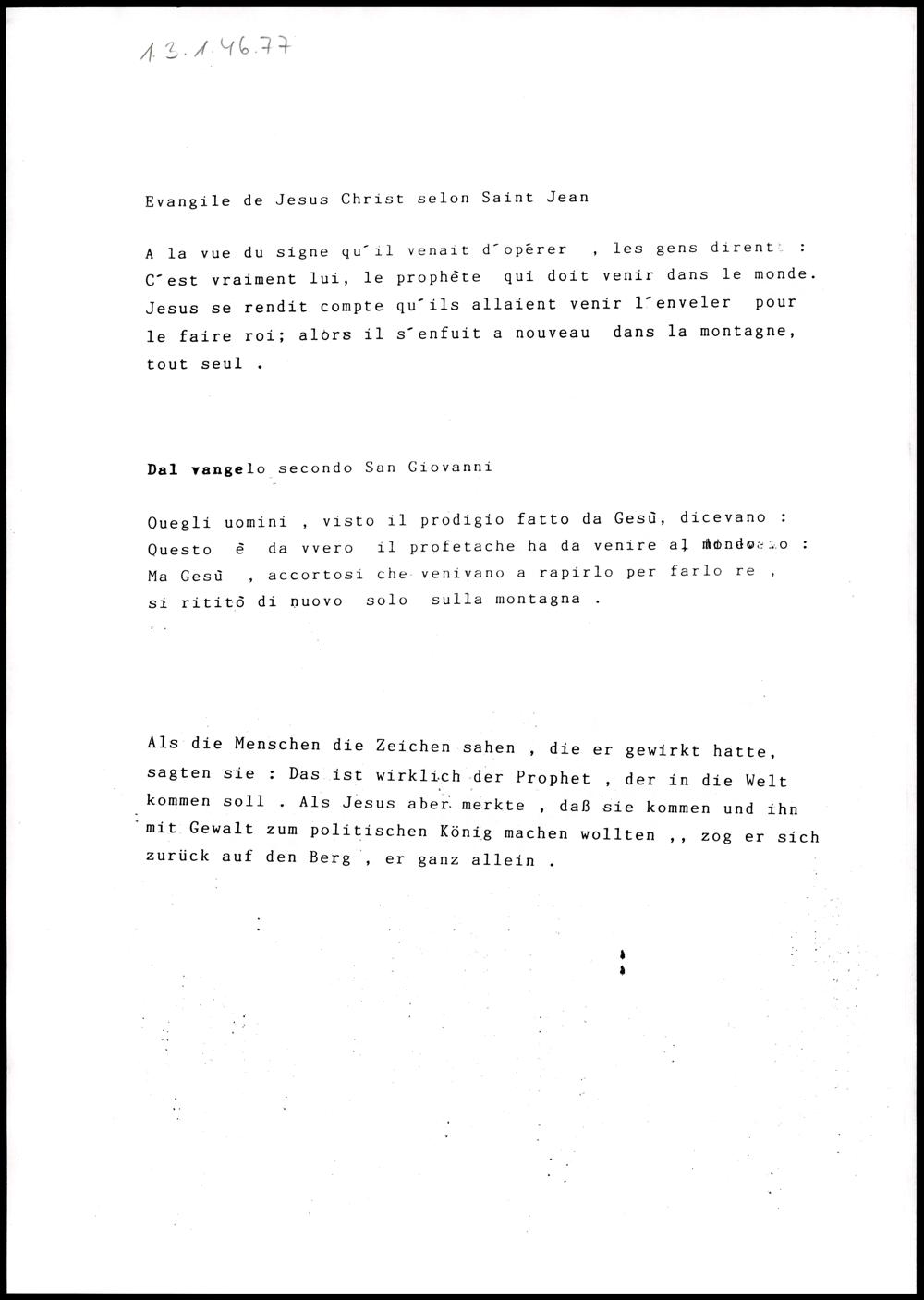 Evangelium französisch, italienisch, deutsch