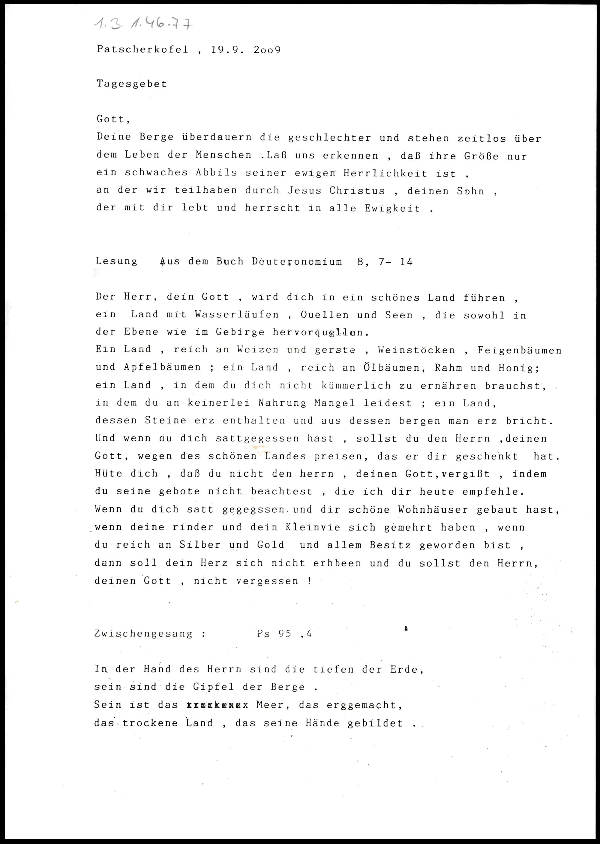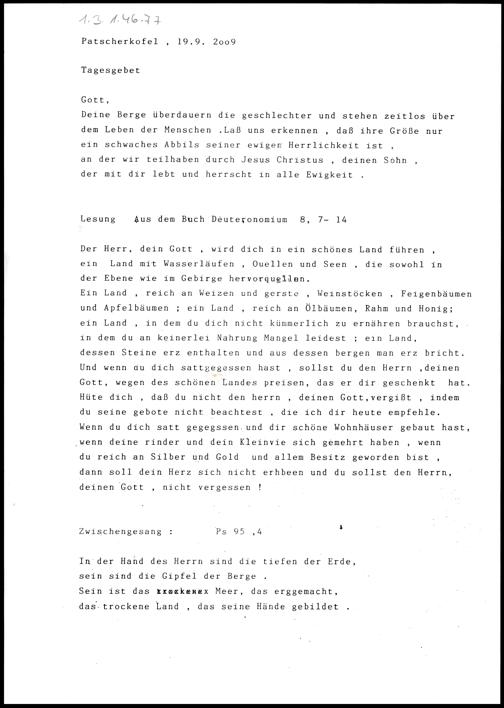 Tagesgebet, Lesung, Zwischengesang in deutscher Sprache