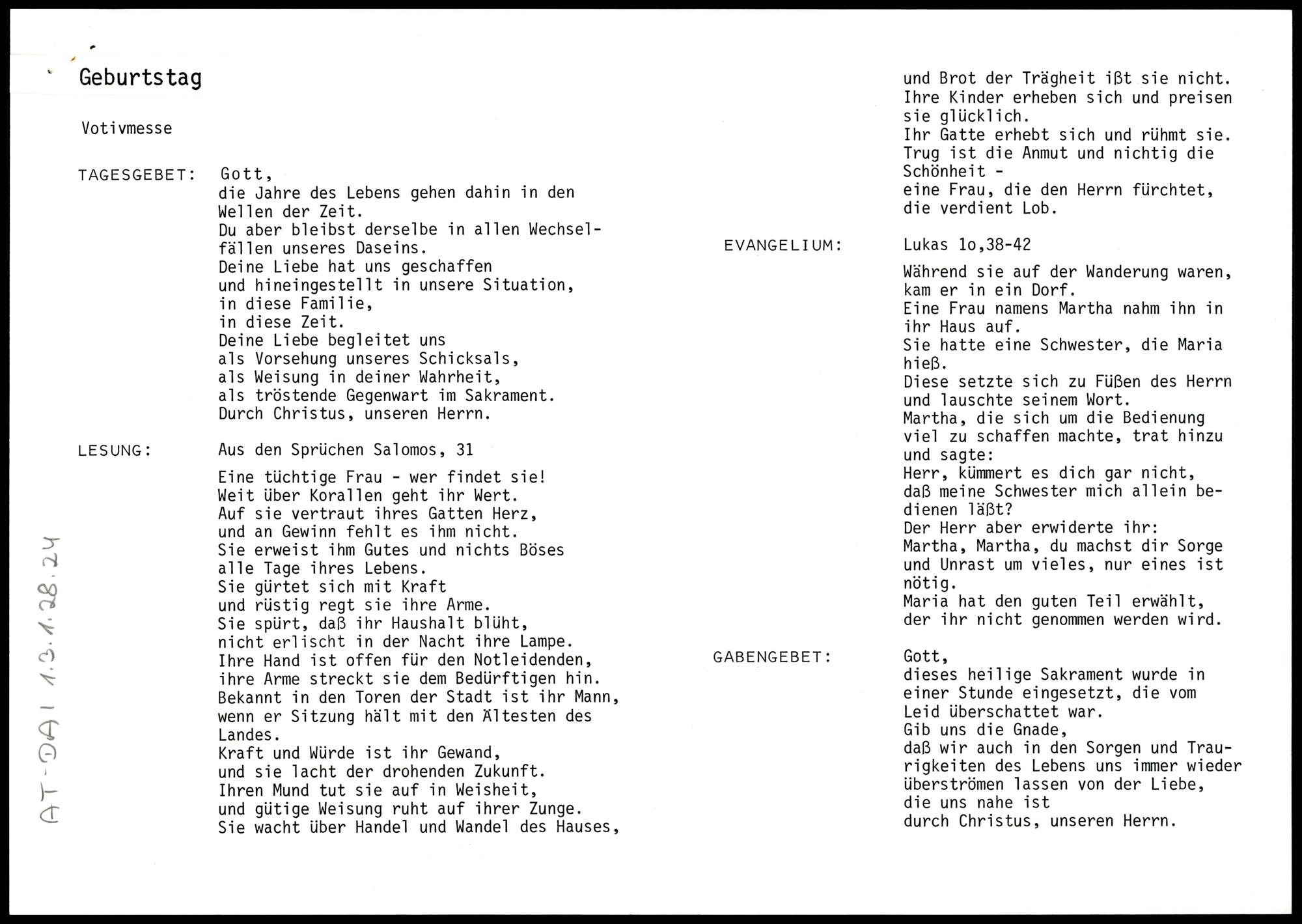 Tagesgebet, Lesung, Evangelium, Gabengebet