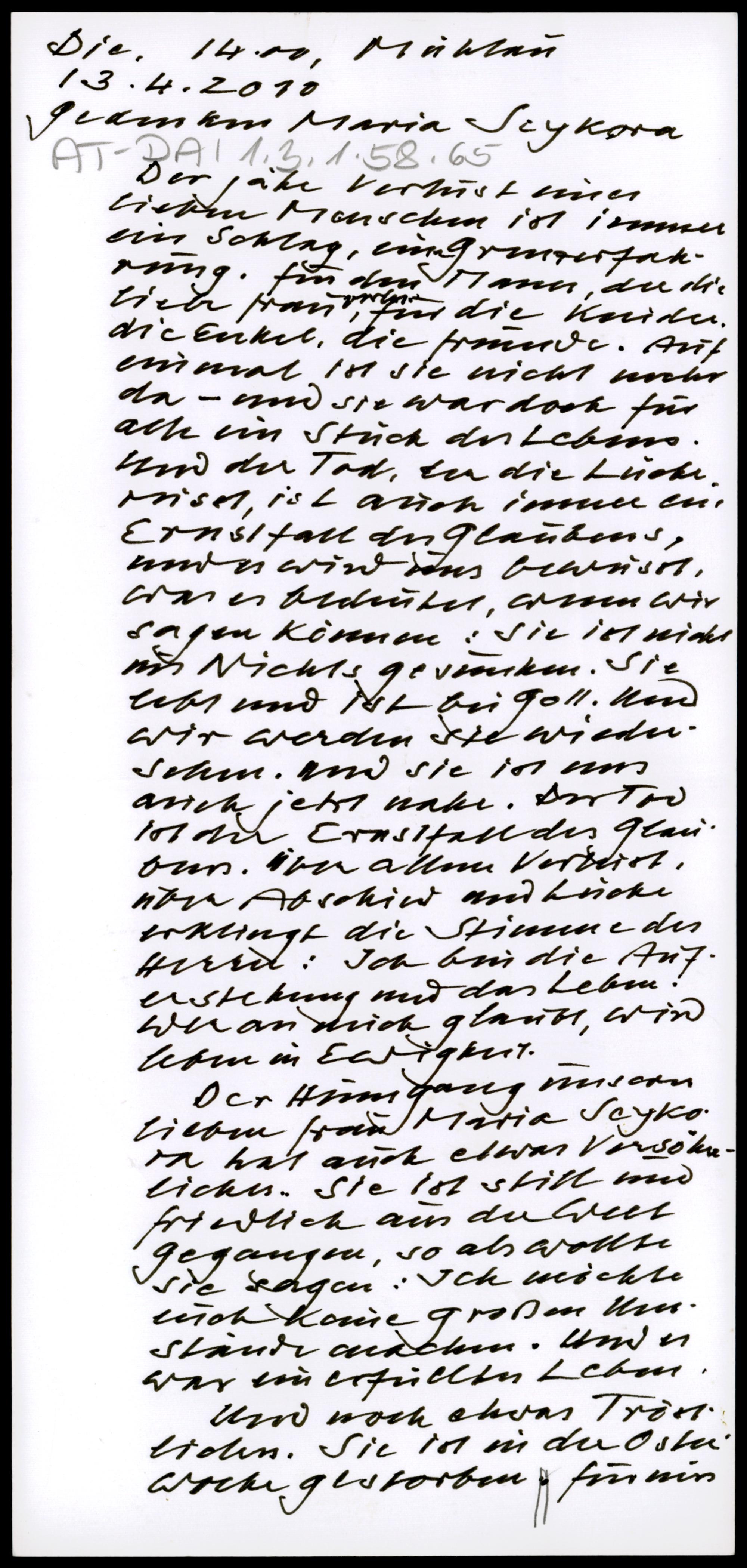 Gedenken an Maria Seykora