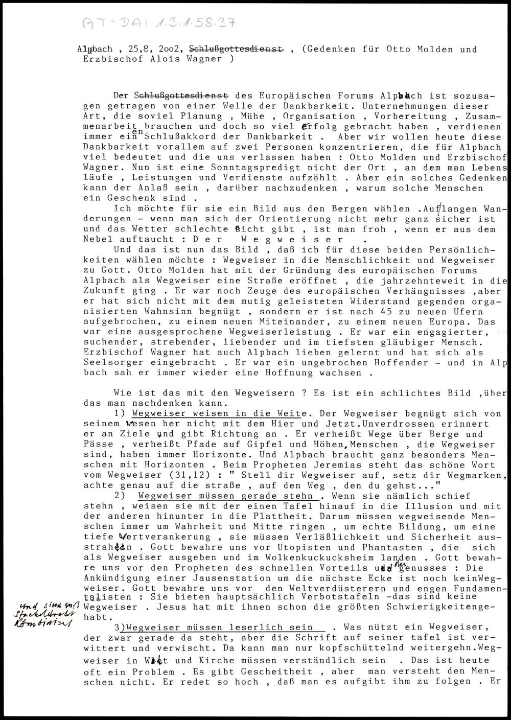 Gedenken für Otto Molden und Erzbischof Alois Wagner