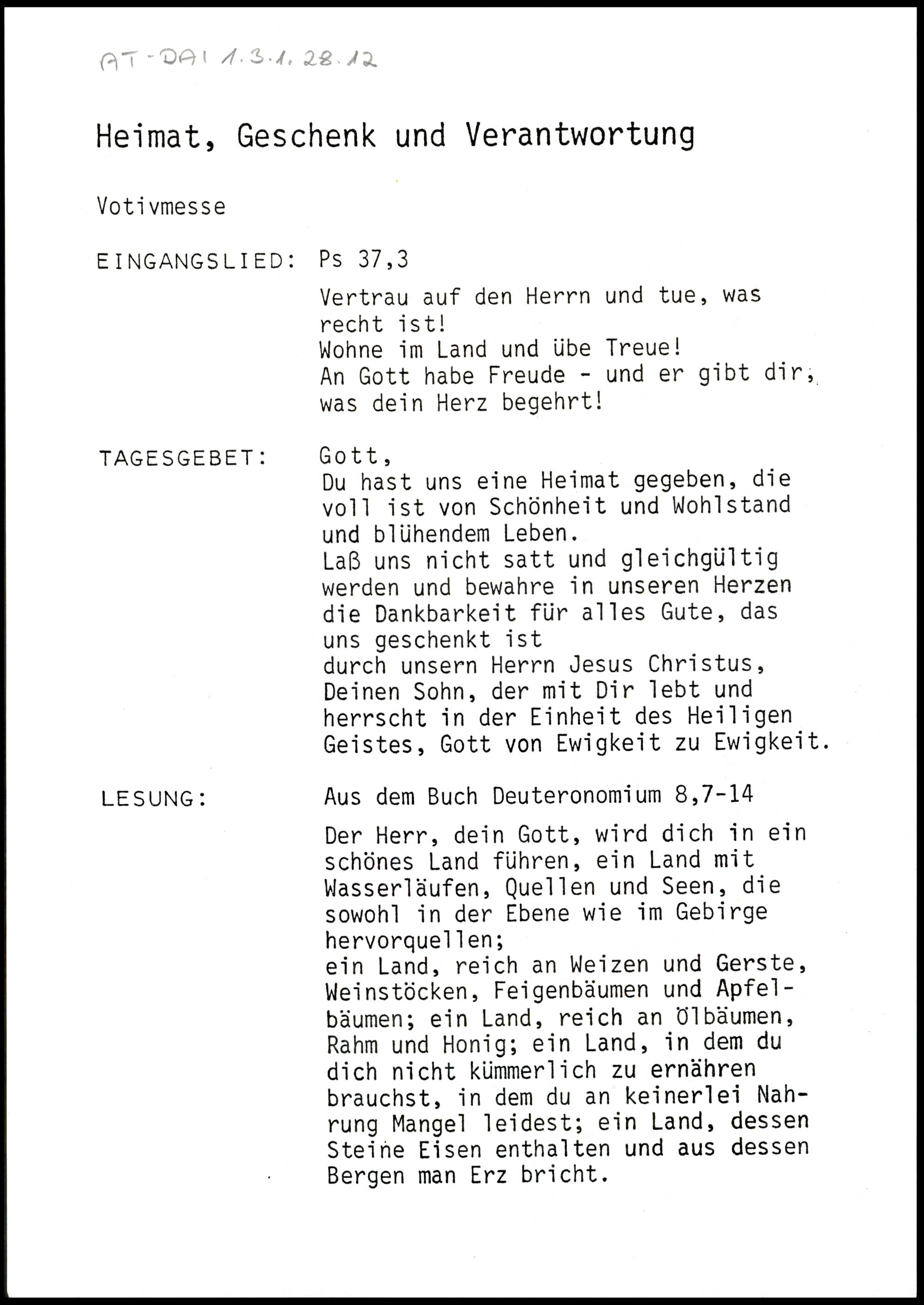 Ablauf der Votivmesse mit Texten