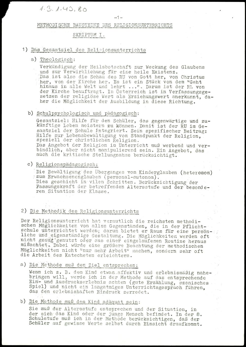 Methodische Bausteine des Religionsunterrichts I