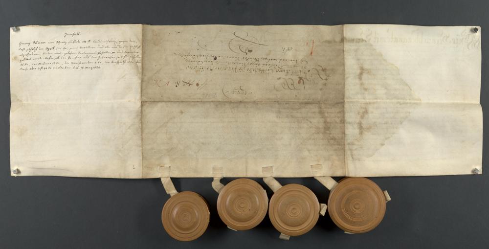 Vorderseite, Plica geöffnet, Siegelkapseln offen