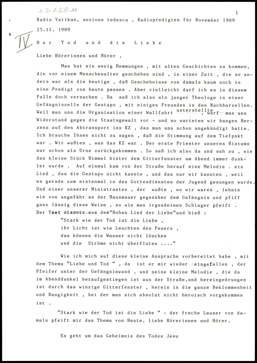 Radio Vatikan, Radiopredigten für November 1989