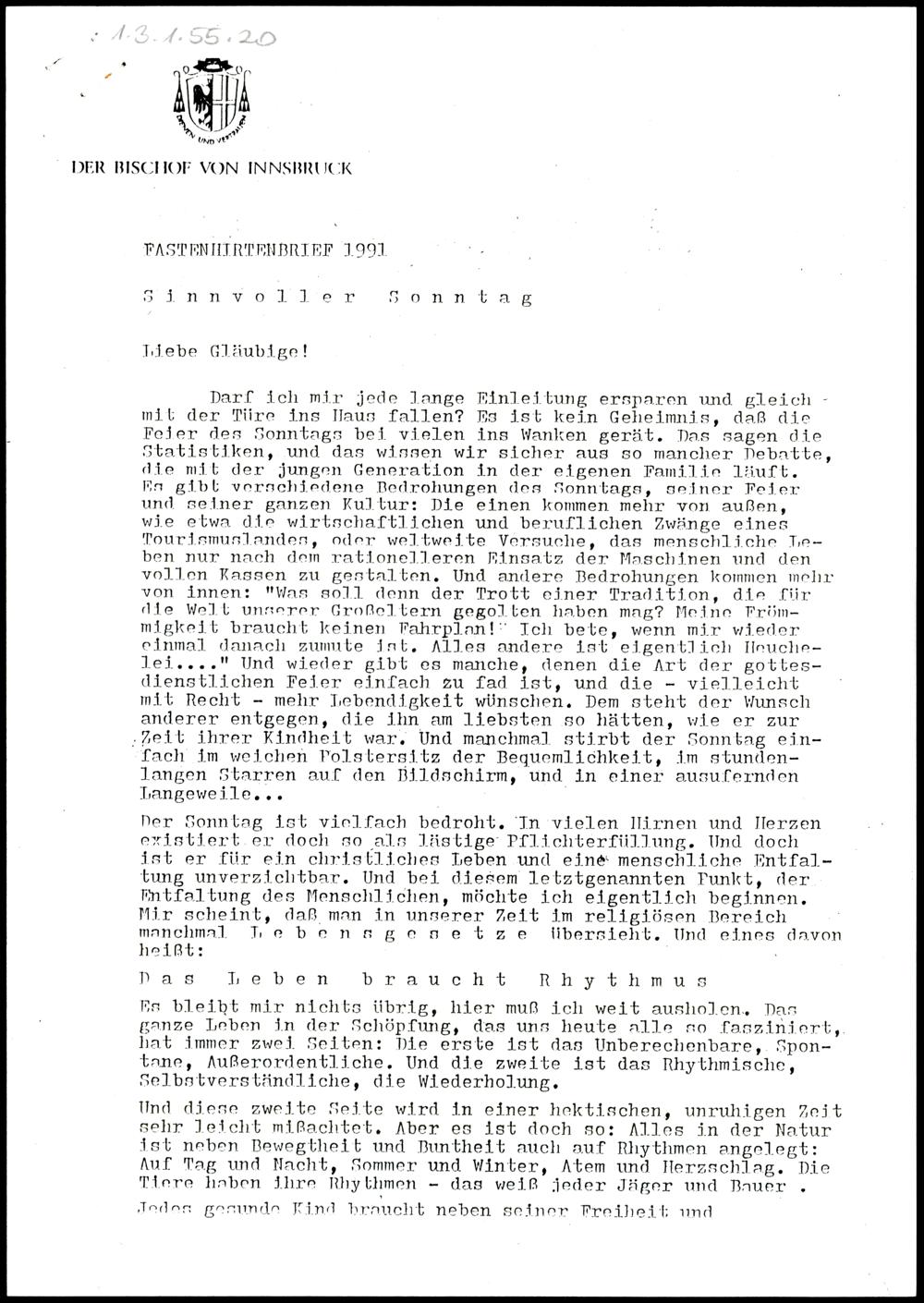 Manuskript des Fastenhirtenbriefs