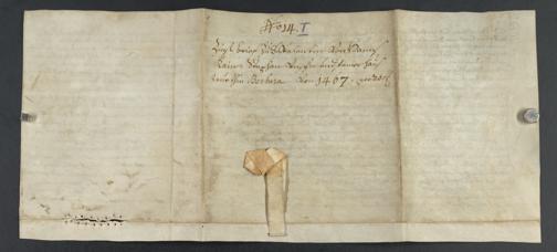 Vorderseite, Plica geöffnet, Reste der Pressel und einer Naht sichtbar