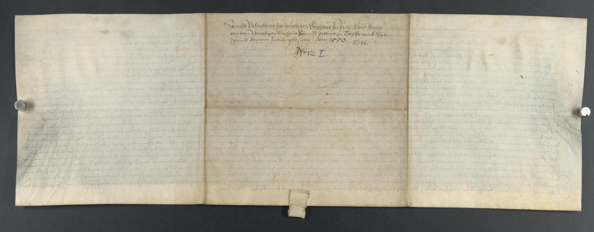 Vorderseite, Plica geschlossen, Reste der Pressel sichtbar