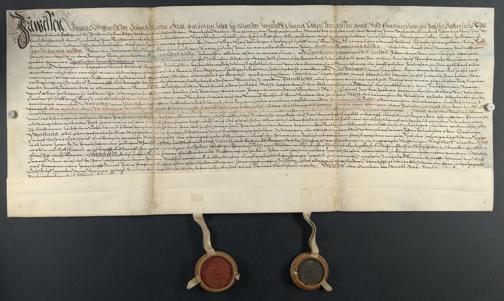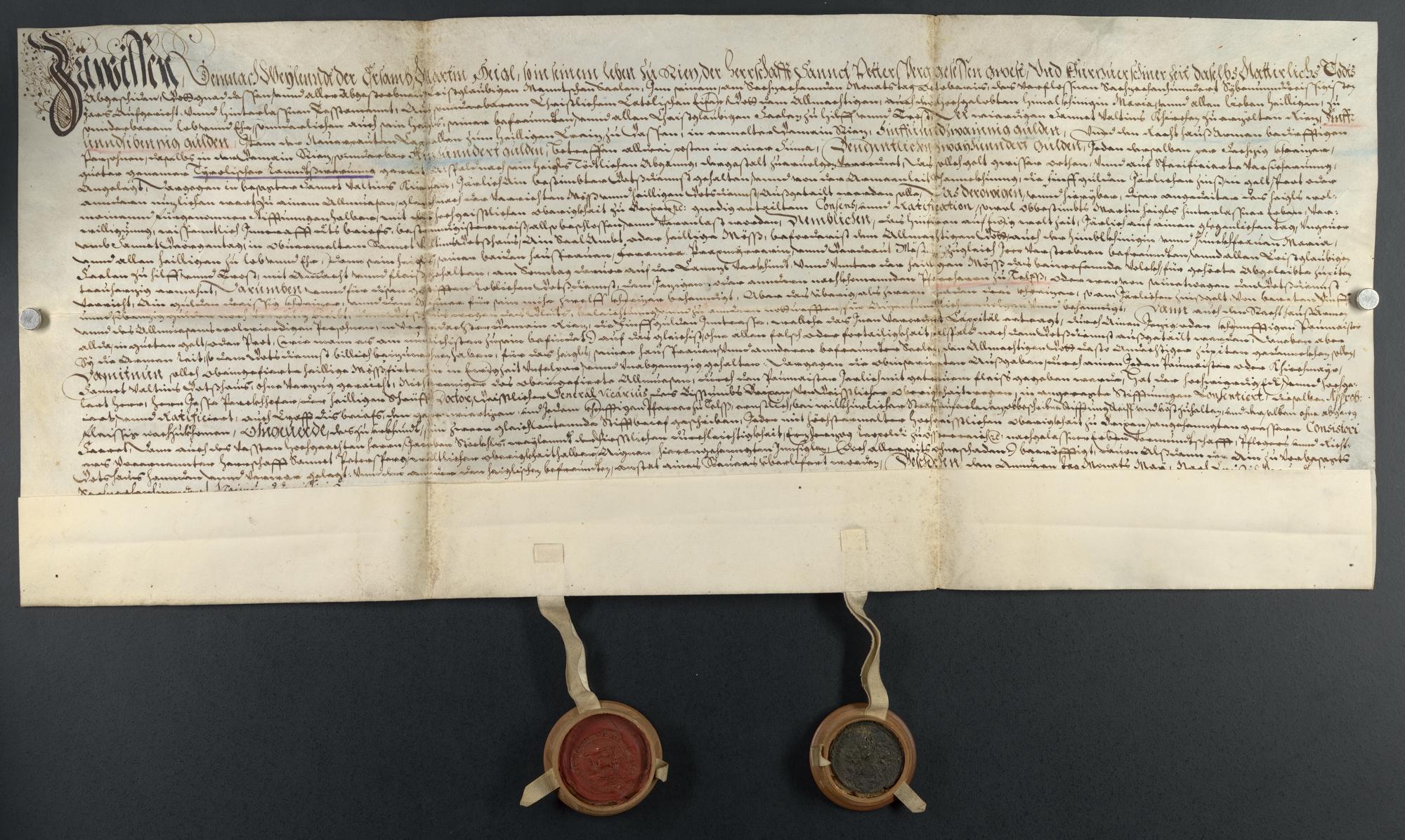 Vorderseite, Plica teilweise geöffnet, Siegel sichtbar