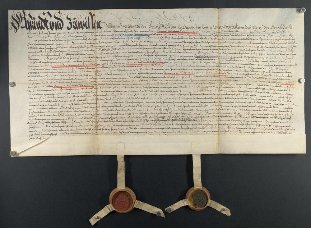Vorderseite, Plica teilweise geöffnet, Siegel sichtbar