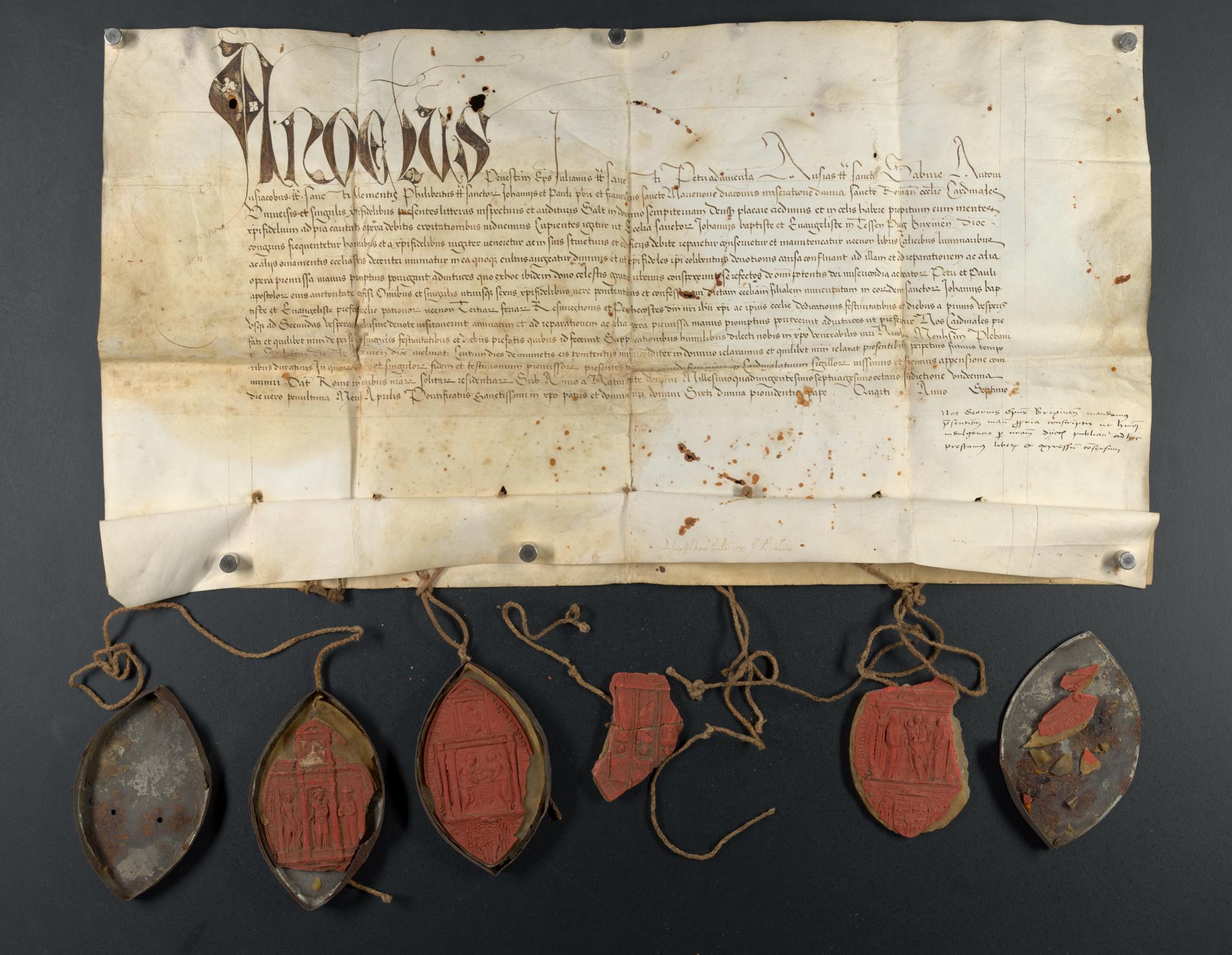Vorderseite, Plica teilweise geöffnet, Schrift auf Plica sichtbar
