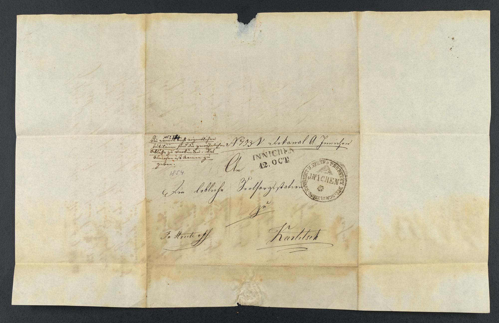 Rückseite mit Adresse, Poststempel, alter Nummer