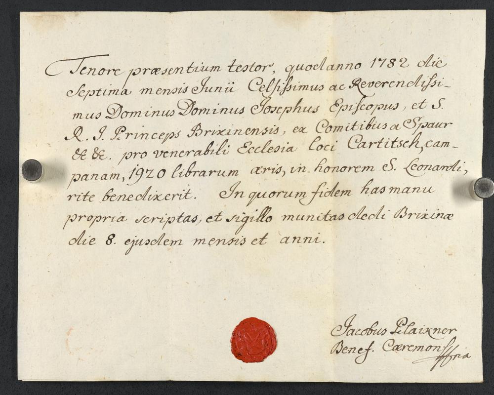 Vorderseite mit Text und Siegel