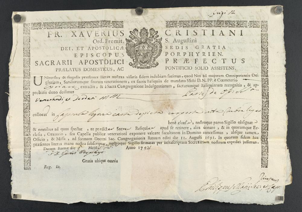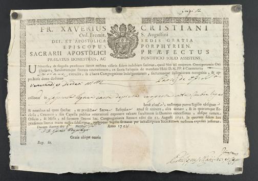 Eintrag des Ordinariats aus Brixen, 1781(?)