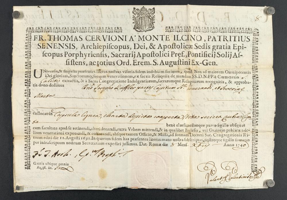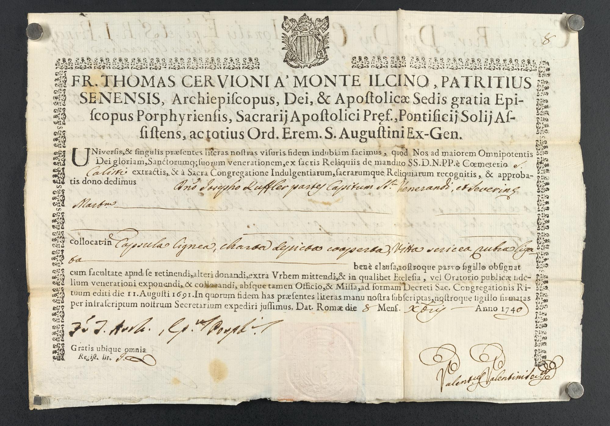 Vorderseite, ausgefüllter Vordruck und Siegel